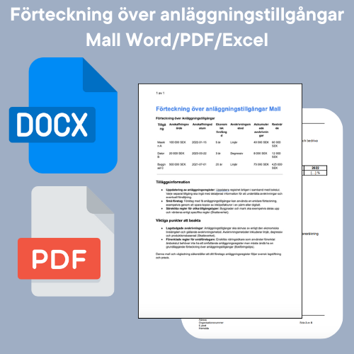 Tack för din positiva feedback, Sofie K. från Malmö! Vi är glada att höra att vår mall för förteckning över anläggningstillgångar har varit ett praktiskt och effektivt verktyg för tillgångshantering. Det är fantastiskt att veta att mallen var enkel att ladda ner och anpassa, och att möjligheten att välja mellan Word-, PDF- och Excel-versionerna underlättade arbetet. Om du har några ytterligare frågor eller behöver mer hjälp, tveka inte att kontakta oss. Tack för att du valde Mallbutiken!